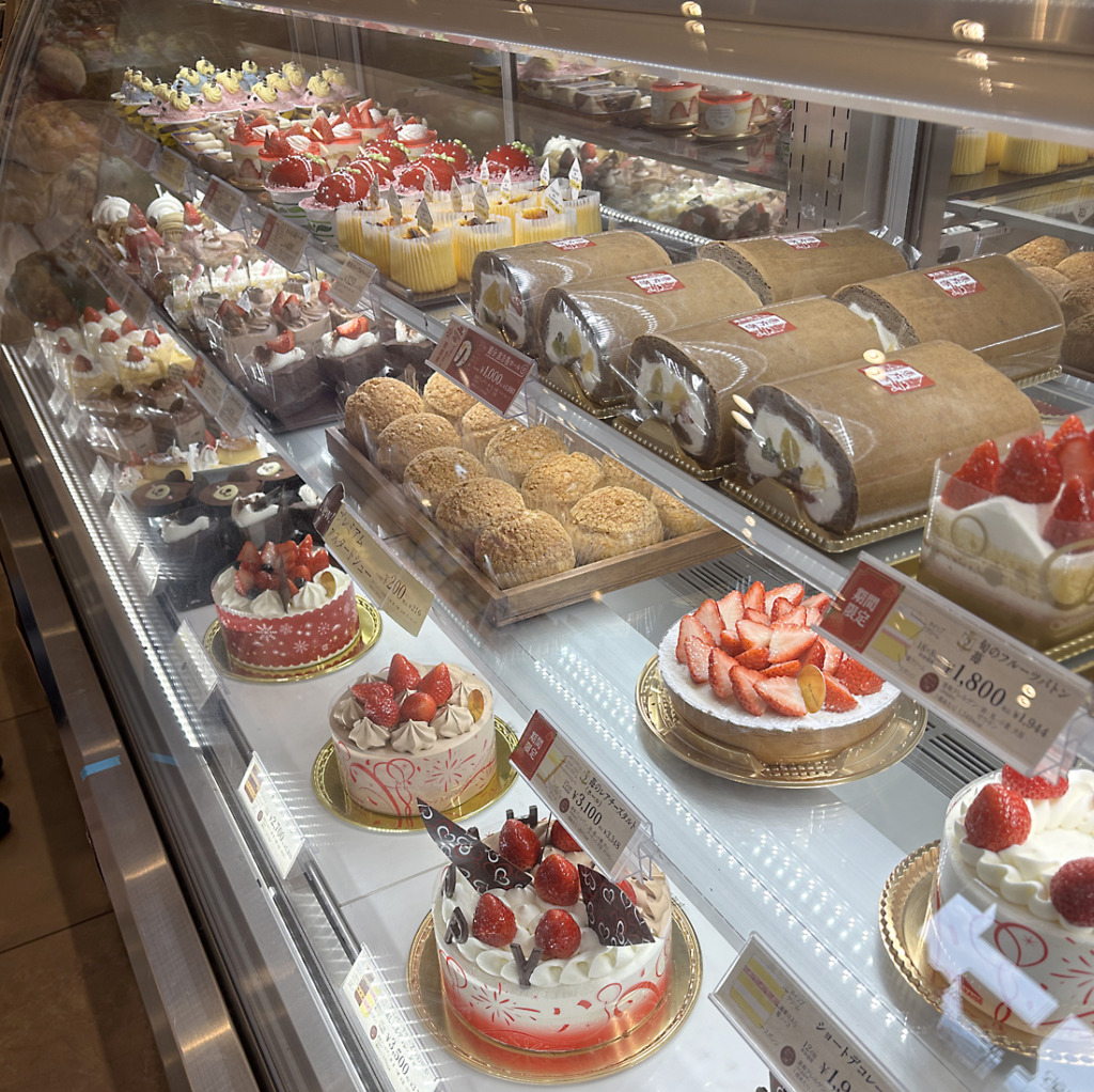 ショートケーキにホールケーキ、シュークリームにロールケーキ、タルトなど、美味しそうなケーキが並びます